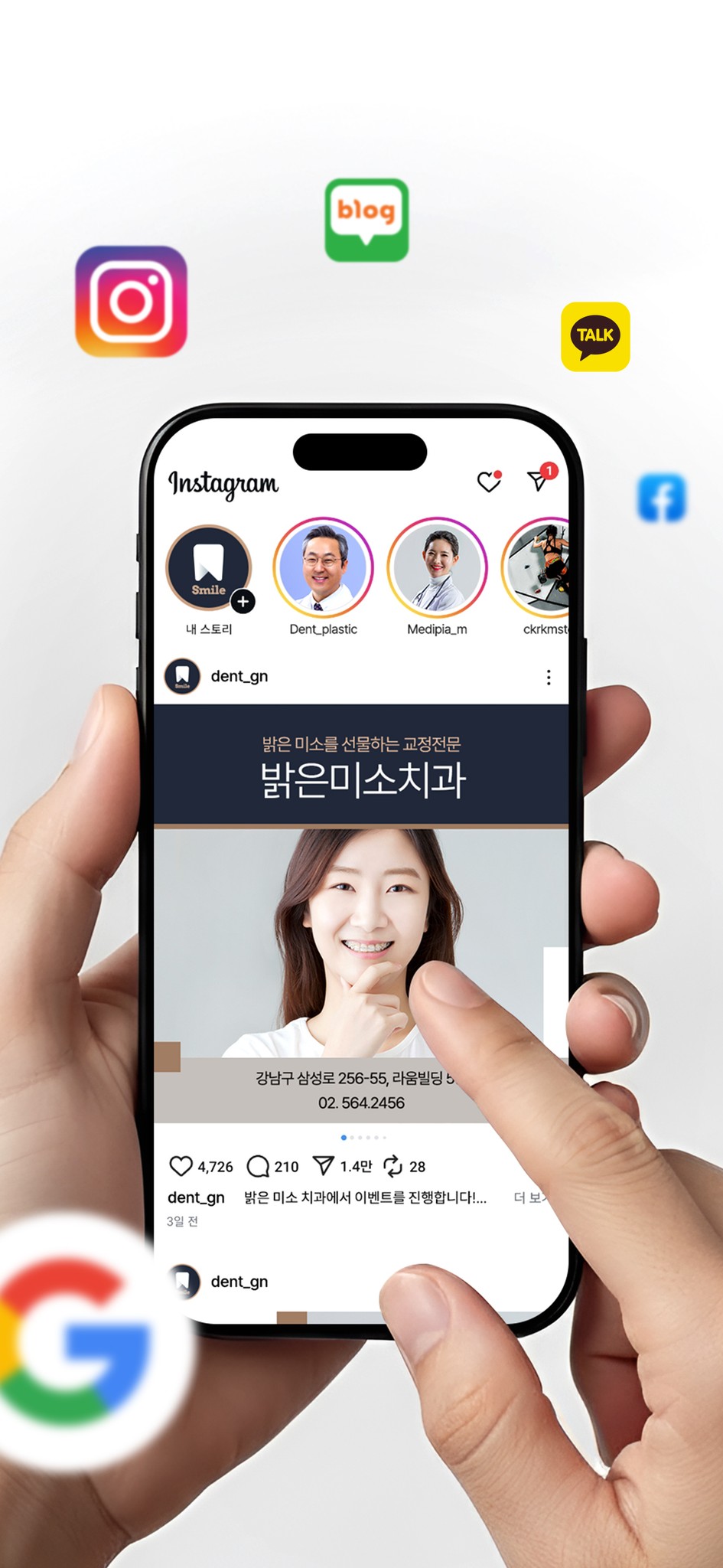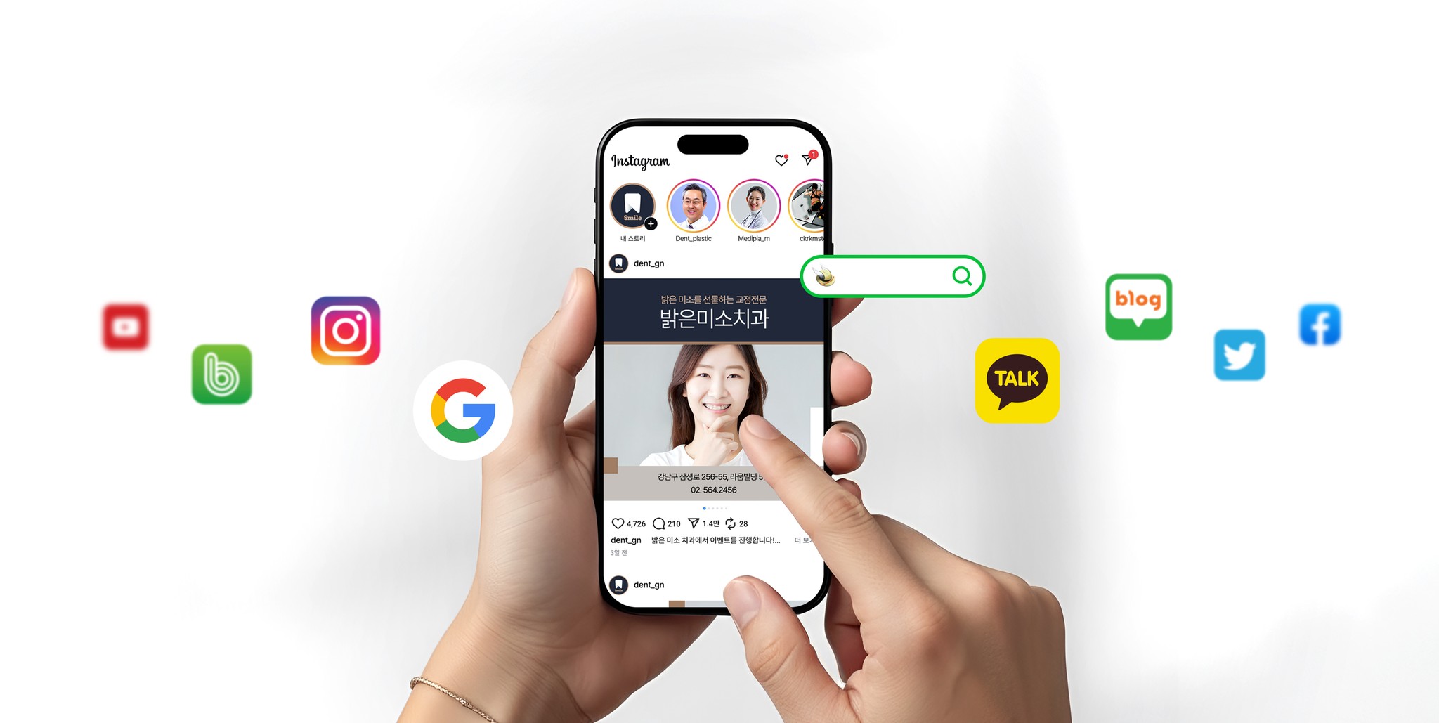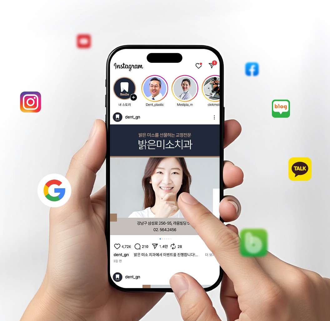 블로그, 유튜브, 인스타그램 등 채널별 맞춤 콘텐츠. 우리 병원만의 톤앤매너가 담긴 디자인으로 병원의 매력을 알리고 신규 환자의 유입을 이끌어냅니다.