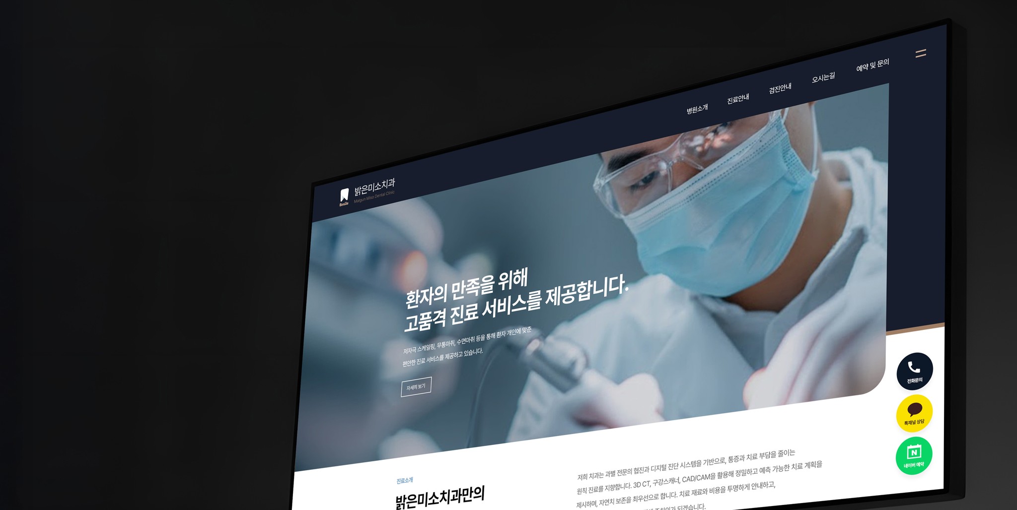환자가 병원을 만나는 첫 관문, 반응형 웹사이트. 편리한 예약 시스템 연동과 모바일에 최적화된 UI / UX 설계로 사용 편의성과 전문성을 모두 잡은 웹사이트를 구축합니다.
