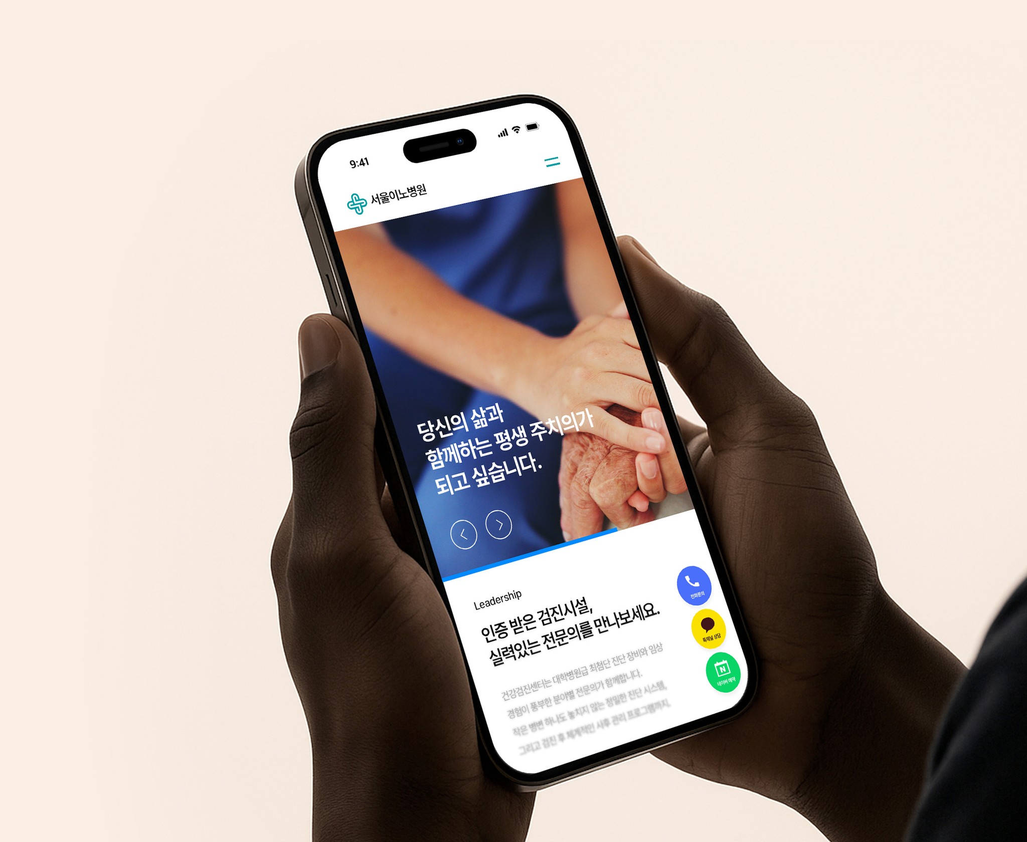 웹사이트, 인쇄물, 디지털 콘텐츠. 매체는 달라도 병원의 결은 같아야 합니다.